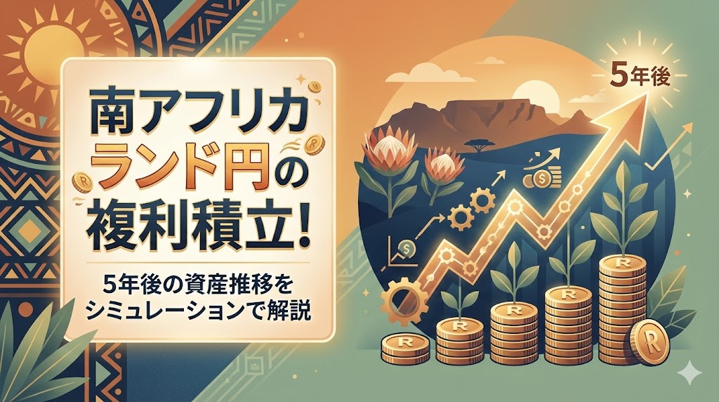 南アフリカは金利が非常に高く、持っているだけで毎日お金がもらえる「スワップポイント」が大きな魅力です。この増えた分をさらに投資に回す「複利」の力を使えば、5年後には驚くような結果が見えてきます。この記事では、5年後の資産がどう動くのか、具体的な数字を出してお話しします。