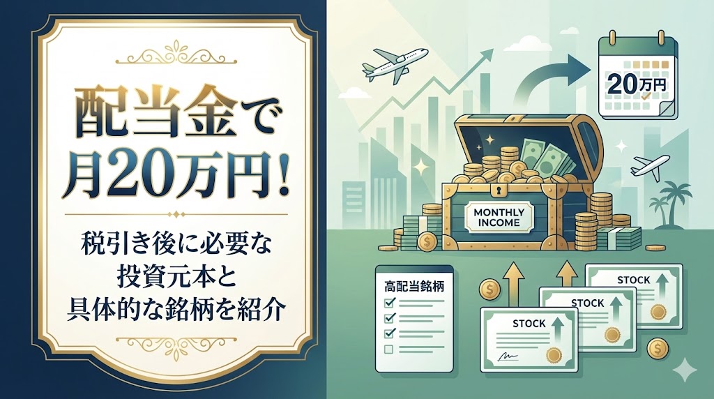 配当金で月20万円!税引き後に必要な投資元本と具体的な銘柄を紹介